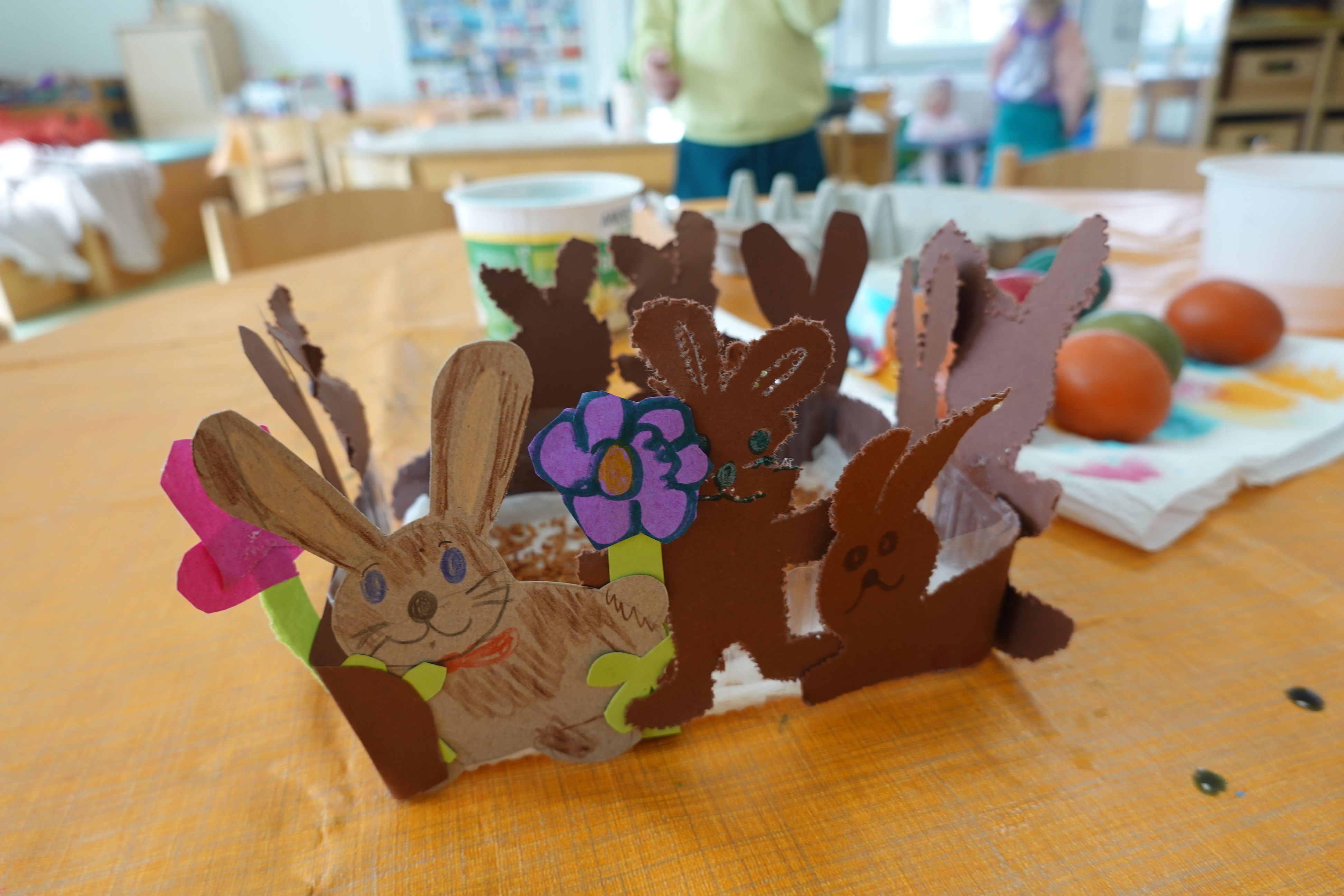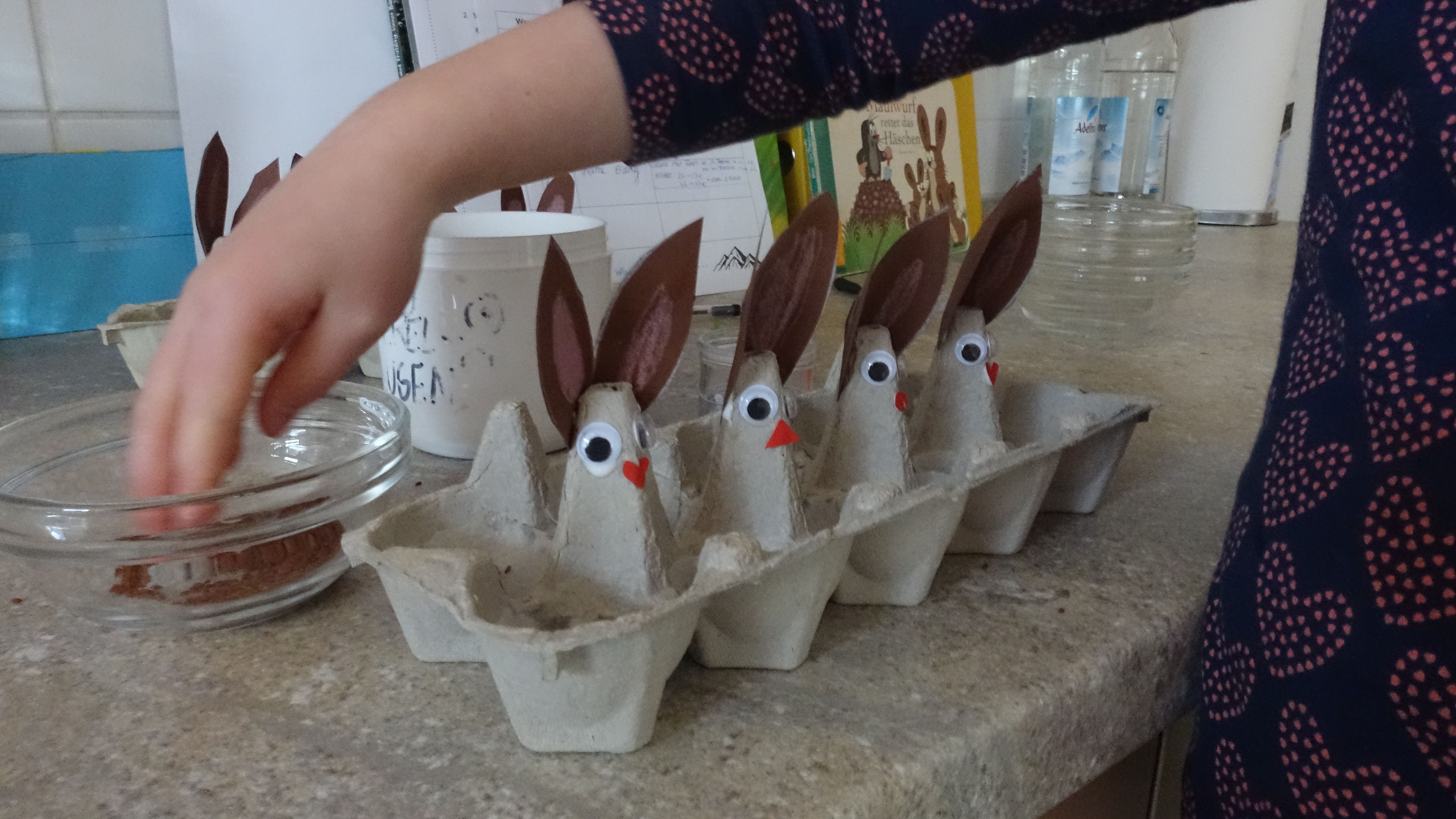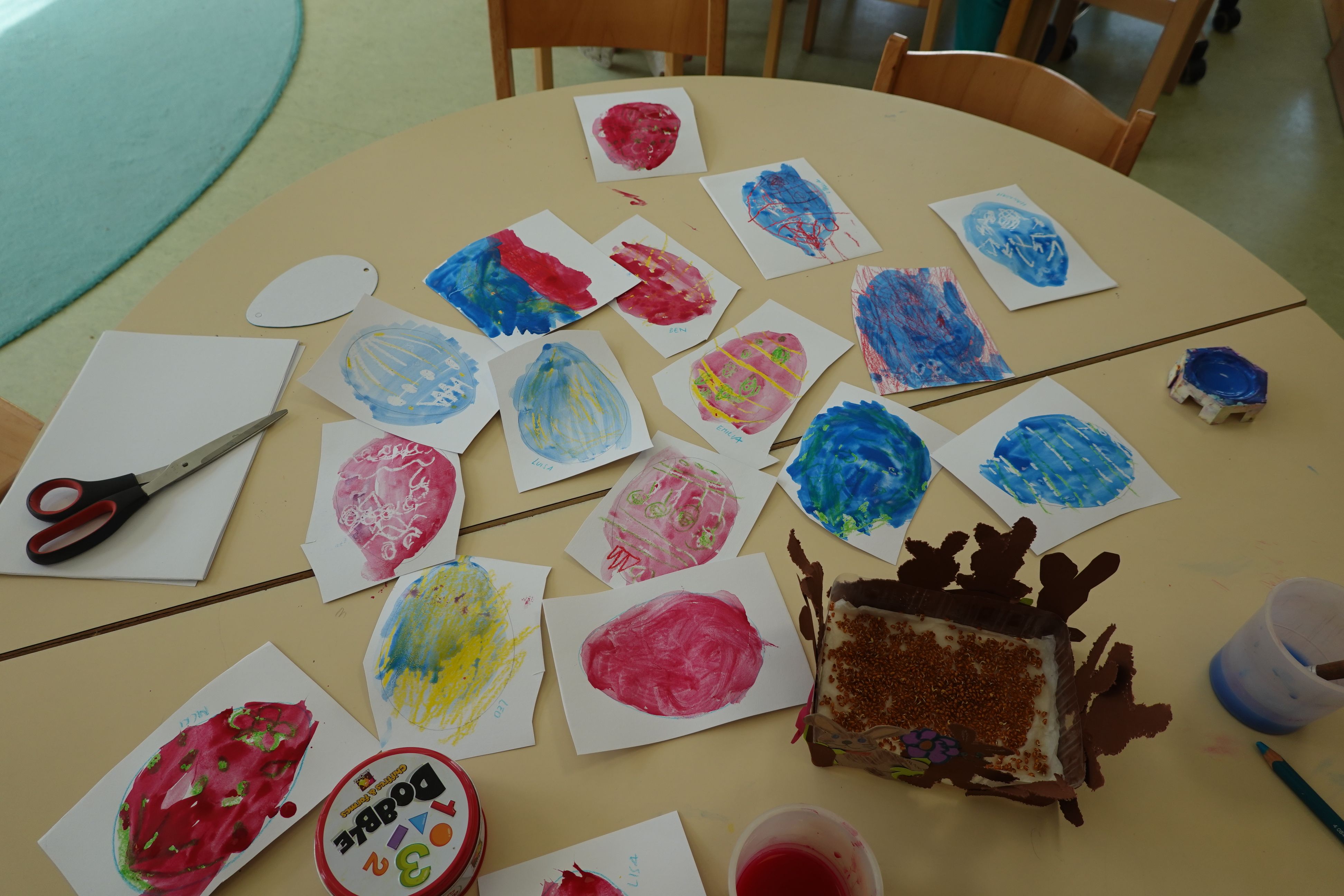 Unsere Osterwerkstatt ist im vollen Gange…. wir basteln und färben, prickeln und malen und und und…. aber sehen Sie selbst: