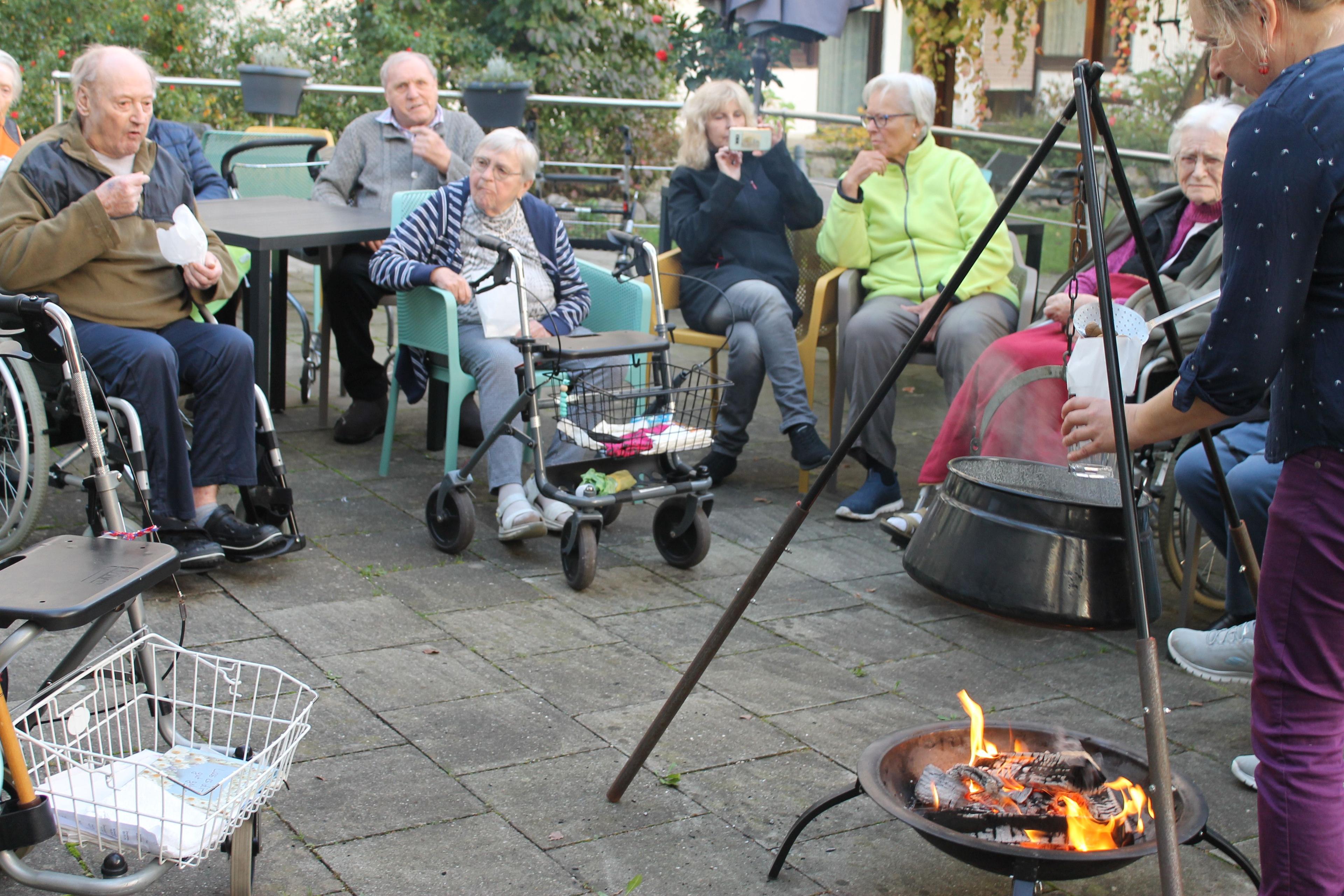 Auf zum „Törggelen“ hieß es Ende Oktober im AWO Seniorenzentrum Traunreut. Am 30.10.2024 holten wir den Südtiroler Brauch zu uns ins Haus. Typische Törggelen-Mahlzeiten konnte man an diesem Abend genießen, dazu gehörten unter anderem Federweißer und Maroni. Die Feuerschale im Garten sorgte nicht nur für Wärme bei den Bewohnern, sondern auch für schmackhafte Maronen, die am offenen Feuer selbst geröstet wurden. Nach dieser kleinen Einstimmung auf den Abend wurde im Bürgersaal weiter gefeiert. Unsere hauseigene Küche servierte charakteristische Köstlichkeiten und Spezialitäten aus der Südtiroler Region. Die Traunwalchener Trachtler kamen zu Besuch und sorgten mit traditionellen Brauchtumstänzen für Unterhaltung und gute Stimmung. Es wurde viel gefeiert, getanzt, gelacht! Nach einem Quiz zum Thema Wein wurden die Gewinner zum Wein -Königspaar gekürt.